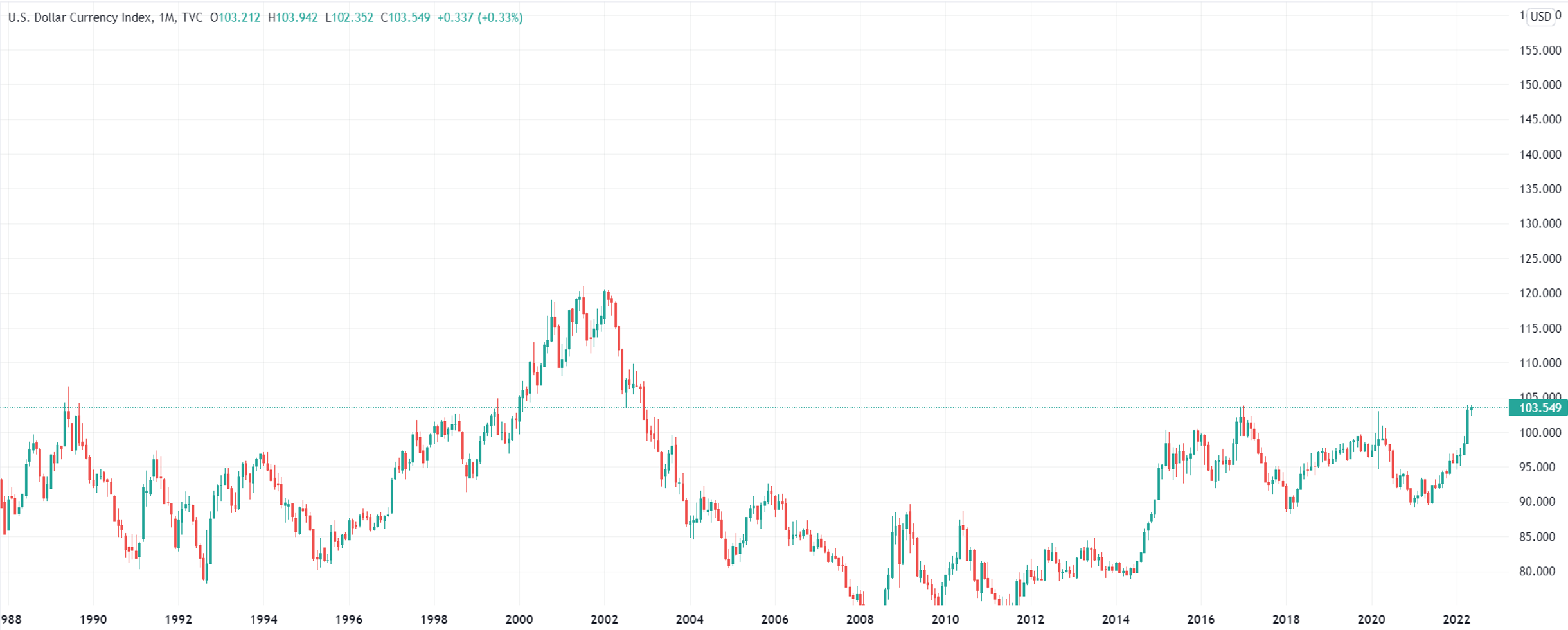 (美元指数月线图,来源:TradingView)