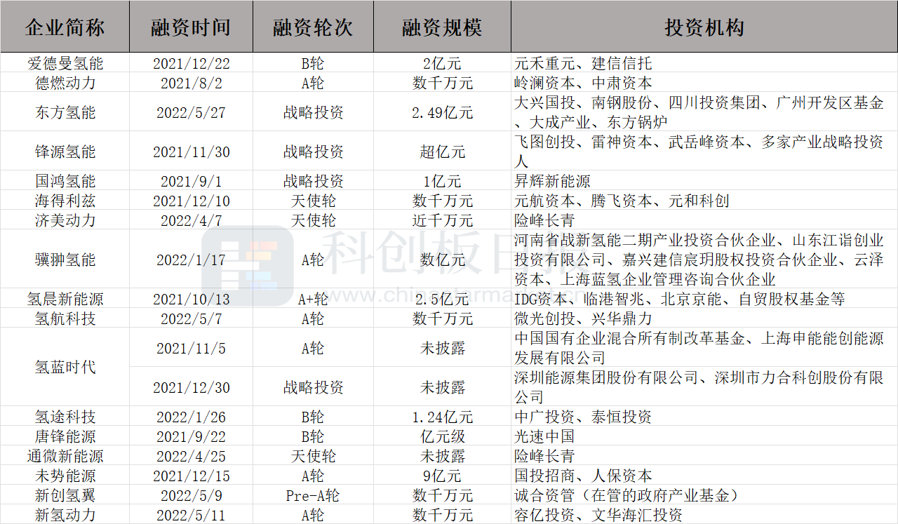 创投通数据显示,自去年7月以来,燃料电池赛道国内共有17家企业完成融资。