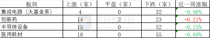 作为对比,本周集成电路、创新药、半导体设备、医用耗材等领域二级市场表现如下表所示。