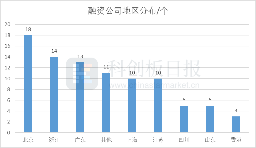从投资地区来看,本周北京、浙江、广东、上海、江苏的公司最受青睐,融资事件数目均超过10起;从单个城市来看,除北京、上海外,杭州有10家公司获投,数量最多,深圳、苏州各有7家,广州、成都各有5家。
