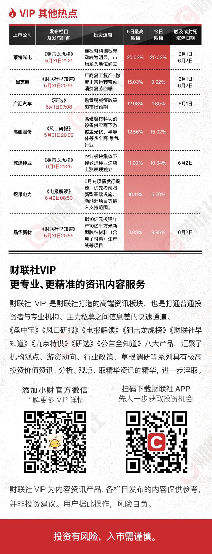 注:财联社VIP为内容资讯产品,并非投资建议。以下内容仅为资讯价值展示非对相关公司的推荐建议,非未来走势预测。投资有风险,入市需谨慎。