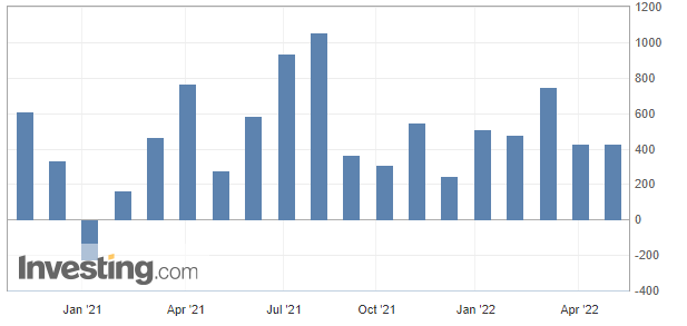 另外,劳工部发布的截至5月28日的一周,初请失业金人数为20万人;经过调整该数据的4周移动平均值为20.65万人,较前一周经修正的平均值减少了500人。