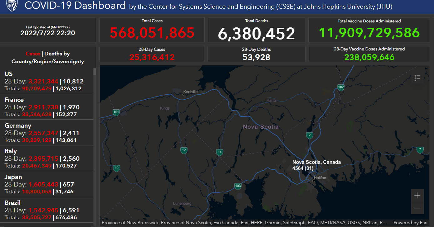(全球疫情概览,来源:约翰霍普金斯大学)