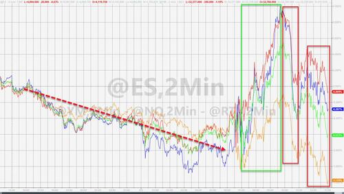从全天走势看,美股隔夜可谓几经波折,最初追随亚太股市集体低开,随后不久在纳指的带动下陆续转涨,但在收盘前两个半小时,美股又悉数转跌,尾盘更是跌势加速。