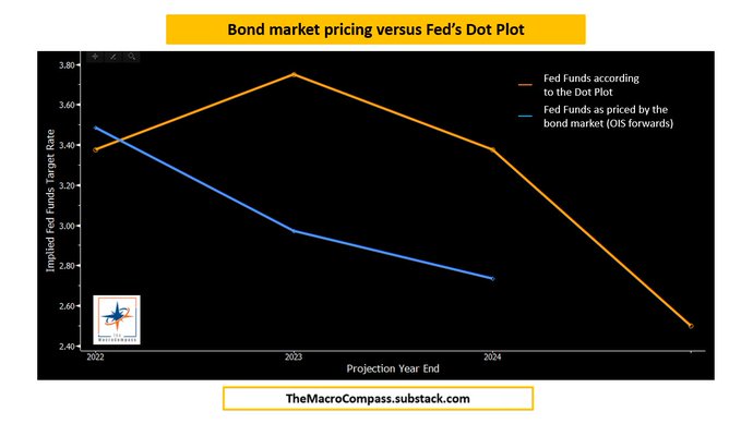 事实上,在上周的美联储决议后,不少业内人士就曾提醒过投资者,目前市场对美联储明年降息的预期和美联储6月点阵图的差距非常大。
