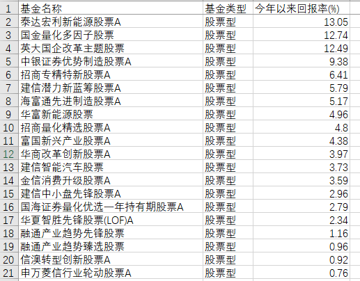 不过,在年初以来市场逆势之下,却依然有不少基金脱颖而出,其中,表现最好的股票型基金、混合型基金收益如何?