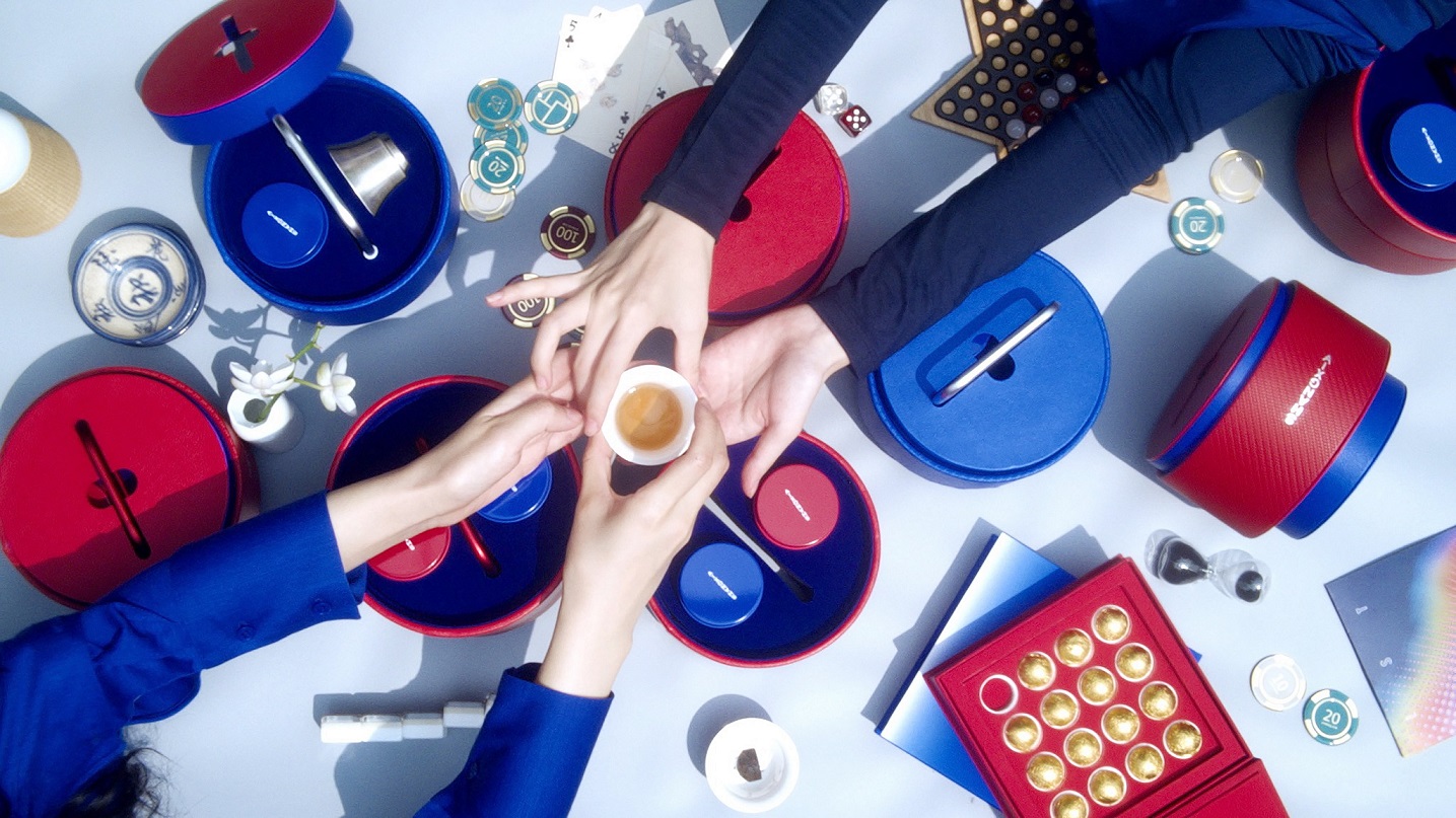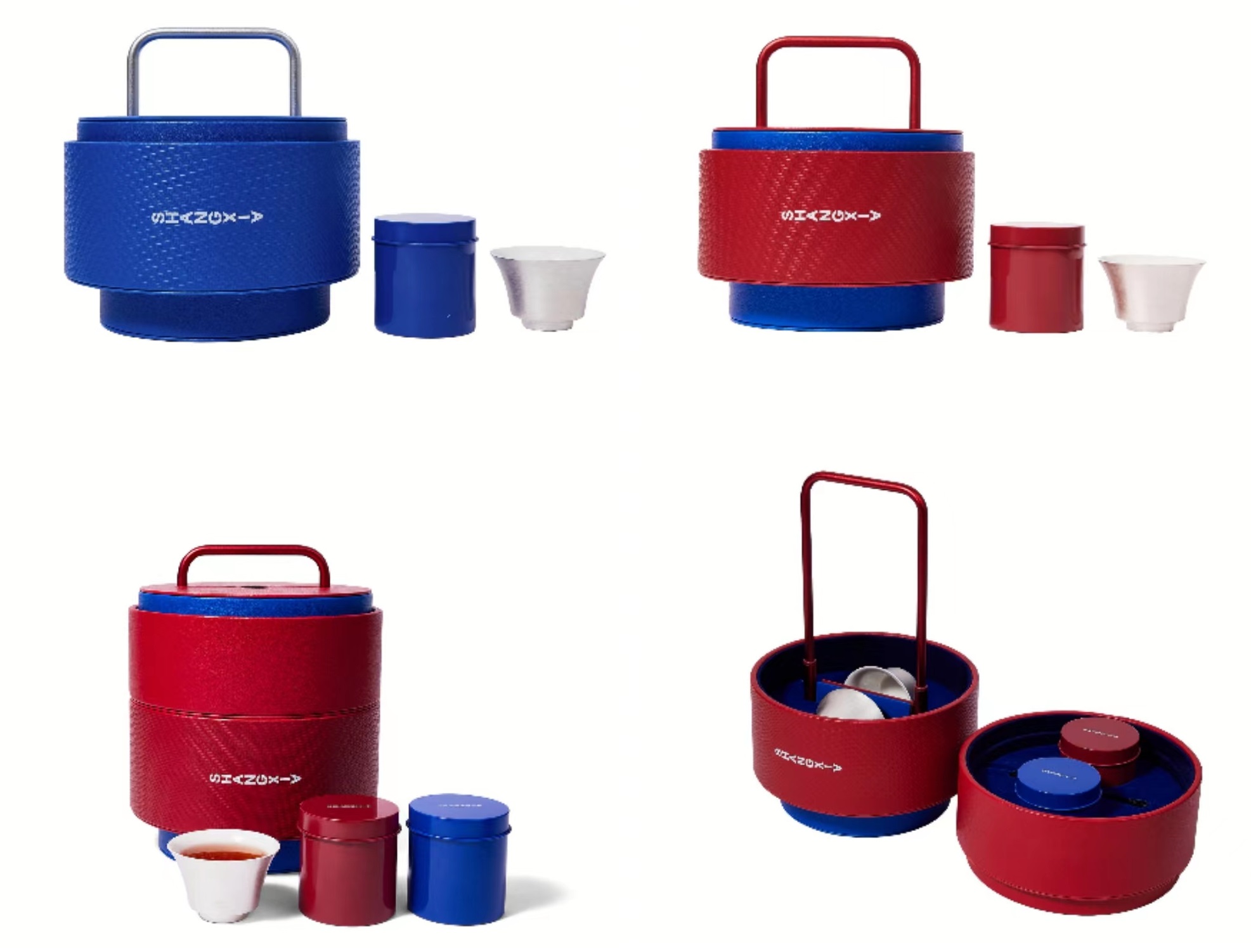 礼盒表面饰以精致竹编底纹,内含银釉茶杯与七子迷你茶叶,茶杯采用高温白瓷材质,外部覆以精湛手工艺打造的肌理银釉,杯底暗含红蓝专属标识,为礼盒注入独特功能性与设计细节。七子迷你茶叶罐内含普洱沱茶小圆饼,创新性的以茶饼代替月饼,寓意团圆,更具心意。茶叶原料甄选自中国云南澜沧江流域临沧产区优质生态茶园,森林覆盖率高且云雾多绕;采用普洱熟茶传统渥堆发酵工艺,呈现熟茶本味;茶汤口感醇厚柔滑,谷物的糯甜中略带果脯的香气。
