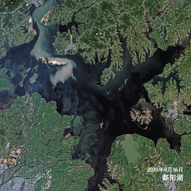 2020年8月16日和2022年8月21日拍摄的鄱阳湖卫星影像。