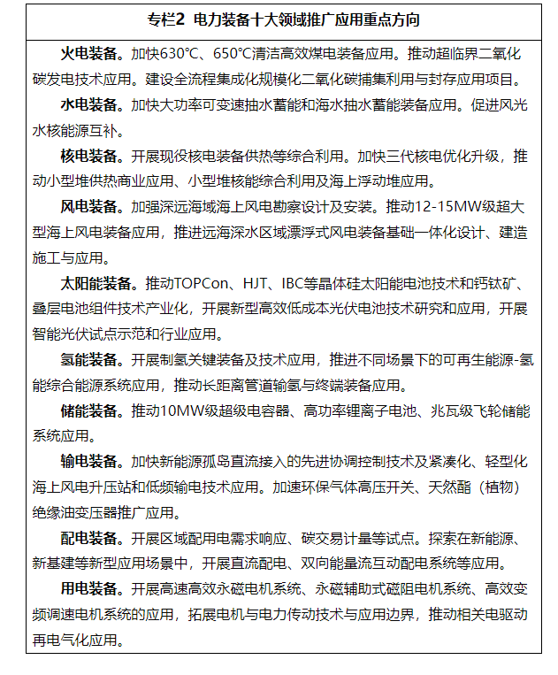 【五部门:推动TOPCon、HJT、IBC等晶体硅太阳能电池技术和钙钛矿、叠层电池组件技术产业化】财联社8月29日电,工信部等五部门联合印发加快电力装备绿色低碳创新发展行动计划。《行动计划》提出,开展试验验证及试点应用。围绕绿源、智网、降荷、新储等新型电力装备,建设满足工程应用实况的首台(套)重大技术装备试验验证平台。发挥重大工程牵引带动作用,鼓励具备基础和条件的地区,积极推进电力装备重点领域技术和产品推广应用。其中,太阳能装备方面,推动TOPCon、HJT、IBC等晶体硅太阳能电池技术和钙钛矿、叠层电池组件技术产业化,开展新型高效低成本光伏电池技术研究和应用,开展智能光伏试点示范和行业应用。火电装备方面,加快630℃、650℃清洁高效煤电装备应用。推动超临界二氧化碳发电技术应用。建设全流程集成化规模化二氧化碳捕集利用与封存应用项目。