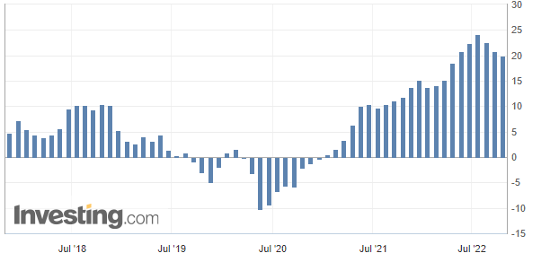 值得一提的是,10.1%也是英国通胀率近40年来的最高水平,上一次达到这个水平还是在两个月前,即7月份的数据。另外,包含自有住房成本的9月居民消费价格指数(CPIH)也反弹回7月的8.8%。