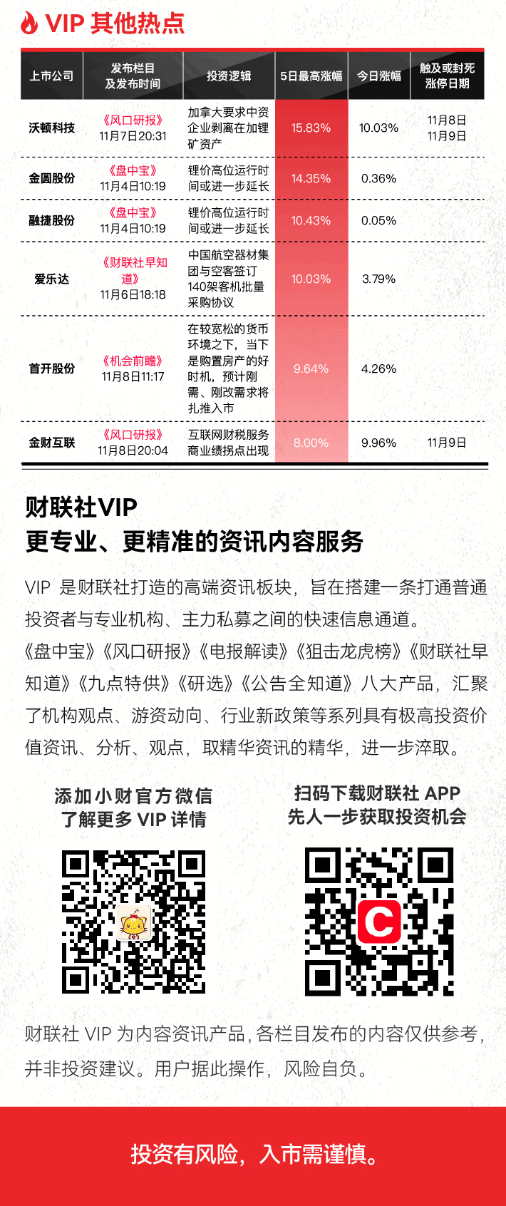 注:财联社VIP为内容资讯产品,并非投资建议。以下内容仅为资讯价值展示非对相关公司的推荐建议,非未来走势预测。投资有风险,入市需谨慎。