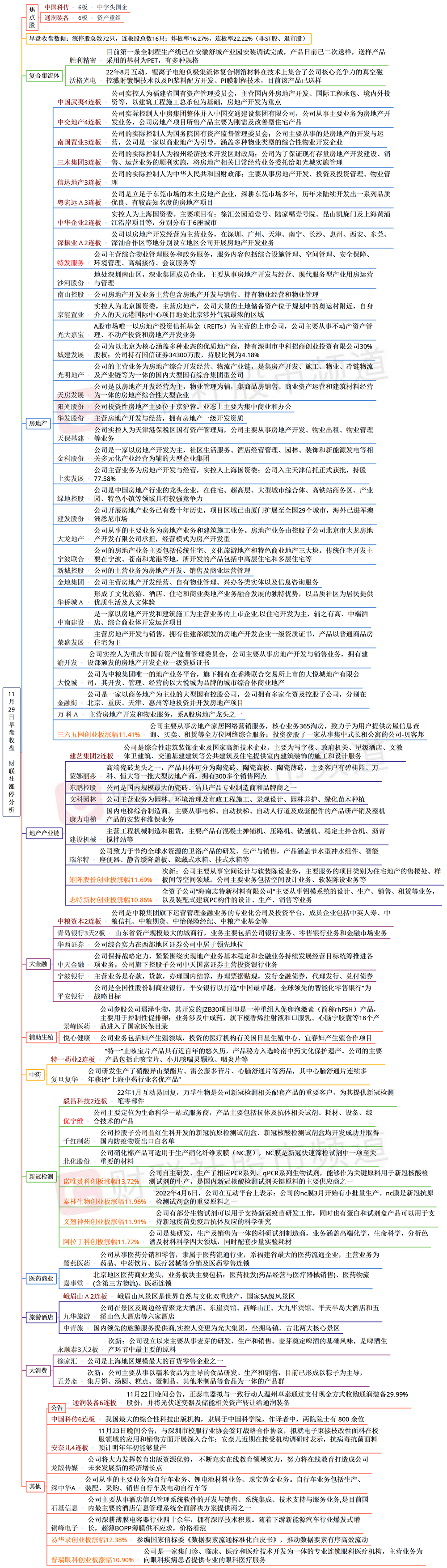 消息面上,11月28日,证监会新闻发言人就资本市场支持房地产市场平稳健康发展答记者问,表示证监会决定在股权融资方面调整优化5项措施,包括:1)恢复涉房上市公司并购重组及配套融资;2)恢复上市房企和涉房上市公司再融资;3)调整完善房地产企业境外市场上市政策;4)进一步发挥REITs盘活房企存量资产作用;5)积极发挥私募股权投资基金作用。