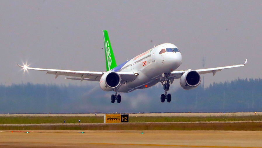 2017年11月10日上午,国产大型客机C919从上海浦东机场起飞,飞往西安阎良,航程超1300公里。当日上午11时38分, C919飞机从上海浦东机场第4跑道起飞,经过2小时24分的飞行,于14时01分成功抵达西安阎良机场。