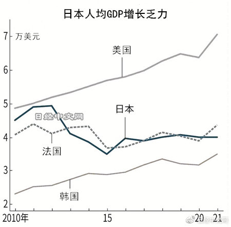 【日本2021年人均GDP减少至39803美元】财联社12月26日电,日本内阁府日前发布的国民经济计算年度推算显示,从成为富裕程度大致标准的人均名义国内生产总值(GDP)来看,日本2021年为3万9803美元。在经济合作与发展组织(OECD)的38个成员国中排在第20位,低于2020年的第19位。日本人均收入增长乏力,个人消费的低迷正在拉低经济整体增长。这是日本自2018年以来、时隔3年再次降至第20位。2020年日本排在第19位,法国居第20位,此次发生逆转。 (日经中文网)