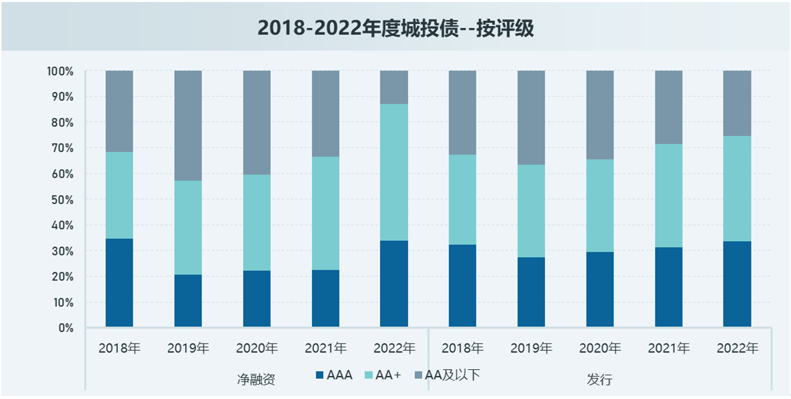 图5:2018年-2022年分评级的城投债净融资额占比情况