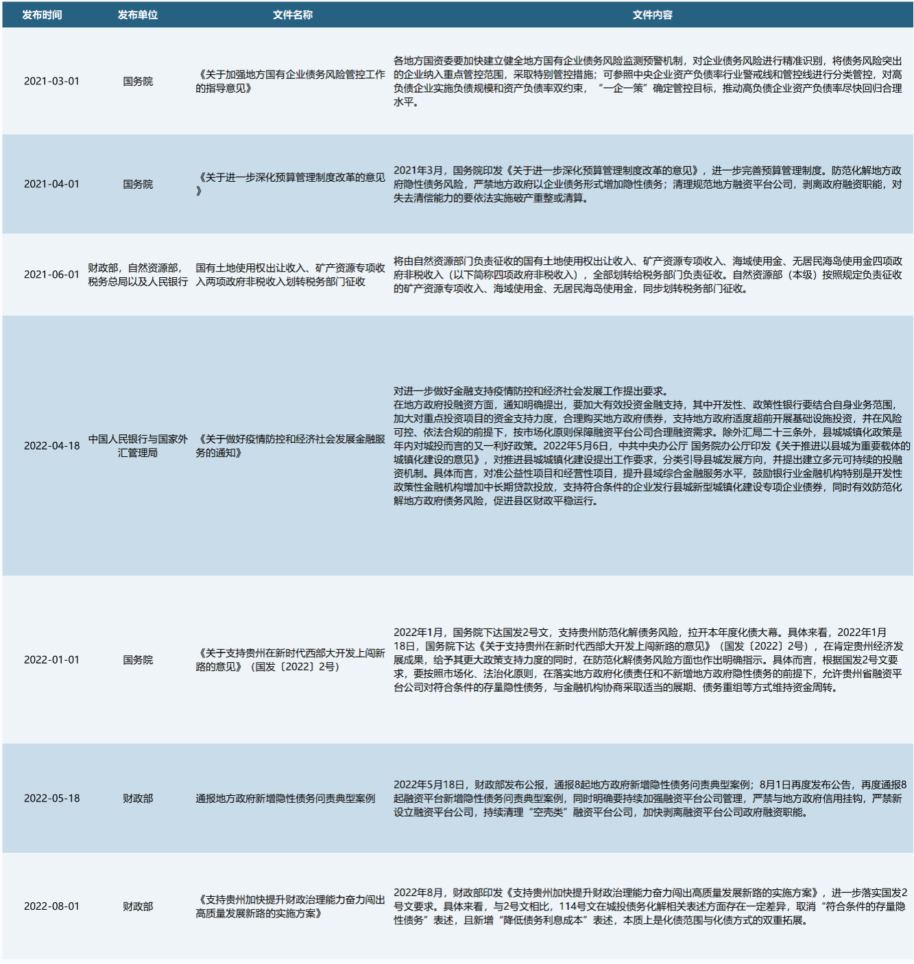 2)防范化解区域债务风险:2022年以来,国务院、财政部针对贵州、山东等区域重点发文,在聚焦区域发展及债务缓释等方面进行指导。