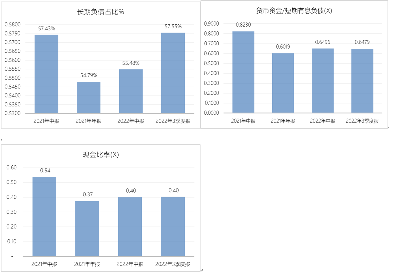 图22:样本城投企业2021年中报至2022年3季度报长期负债占比以及短期偿债能力指标