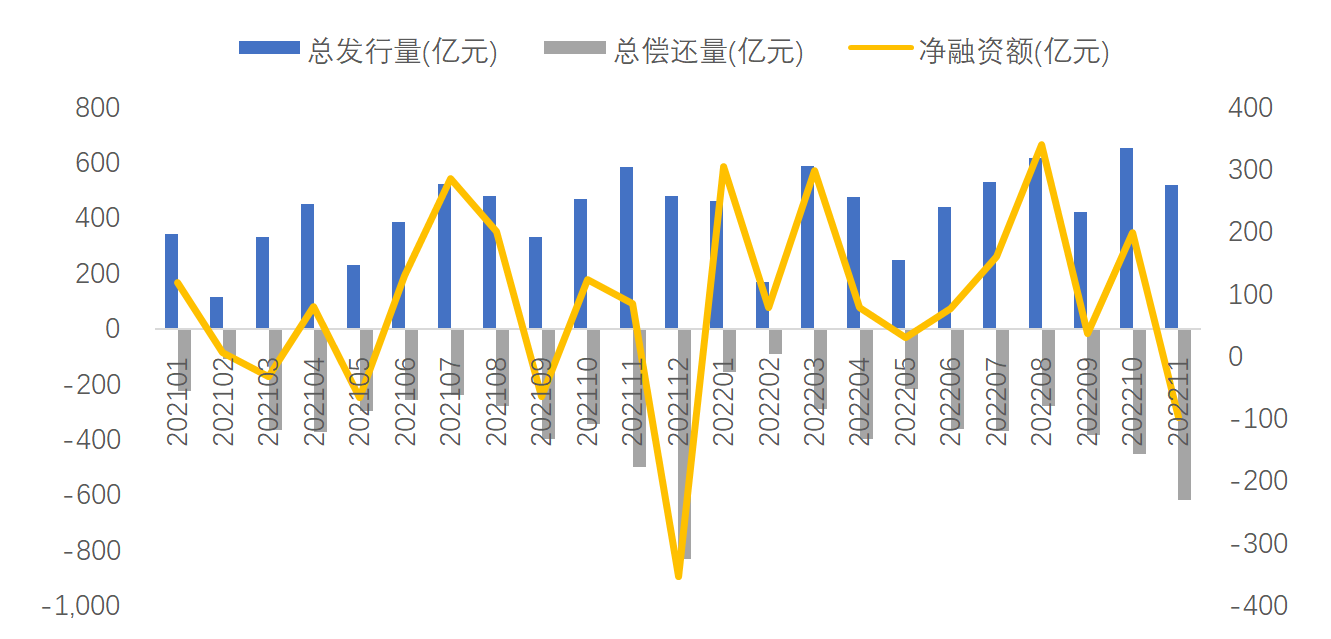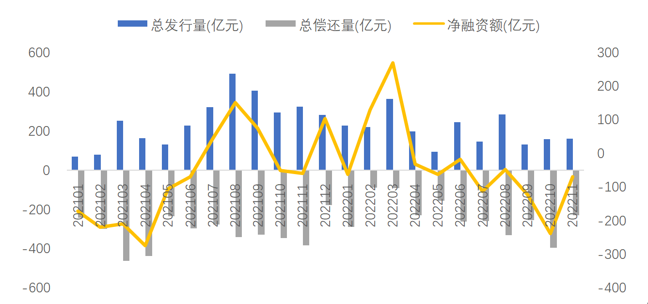 图5 2021年1月-2022年11月房地产行业债券发行、偿付情况