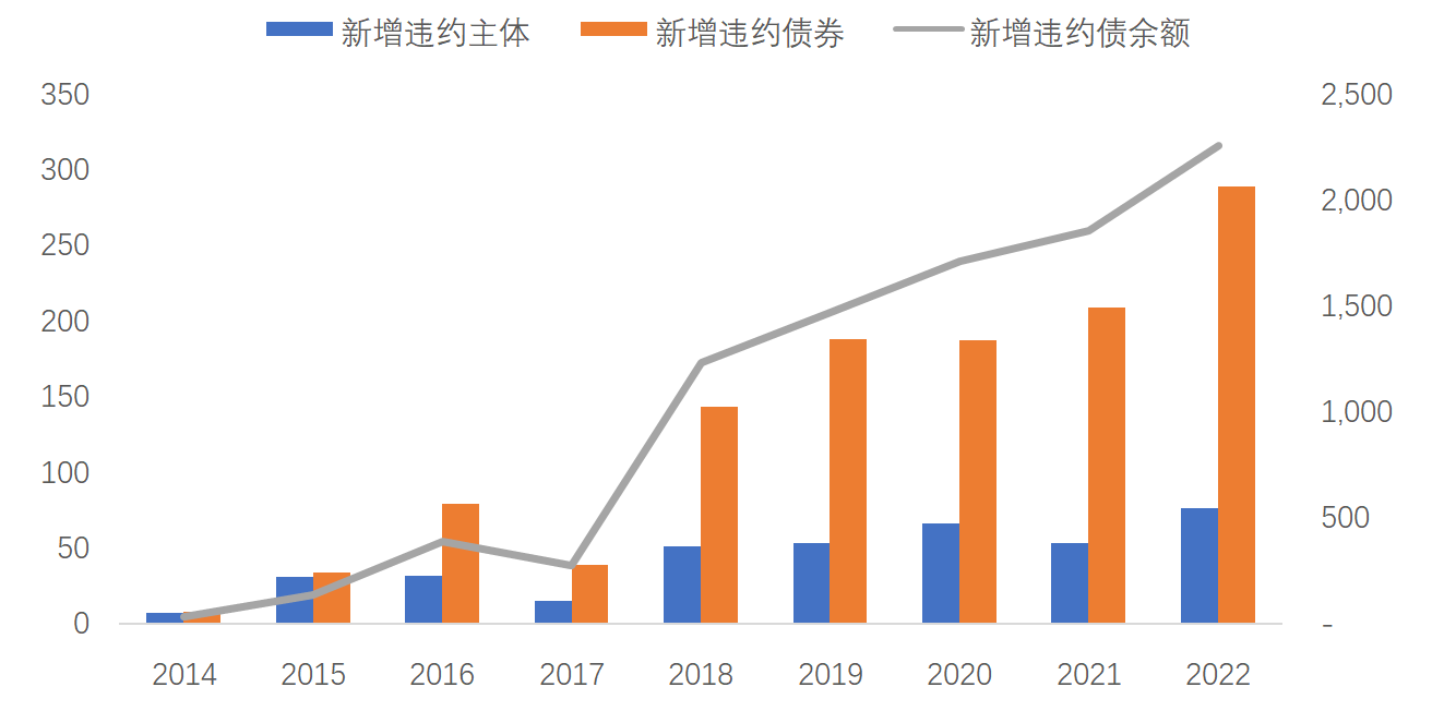 债券违约(含展期)明显增加,新增违约债券余额2256亿元,同比增22%