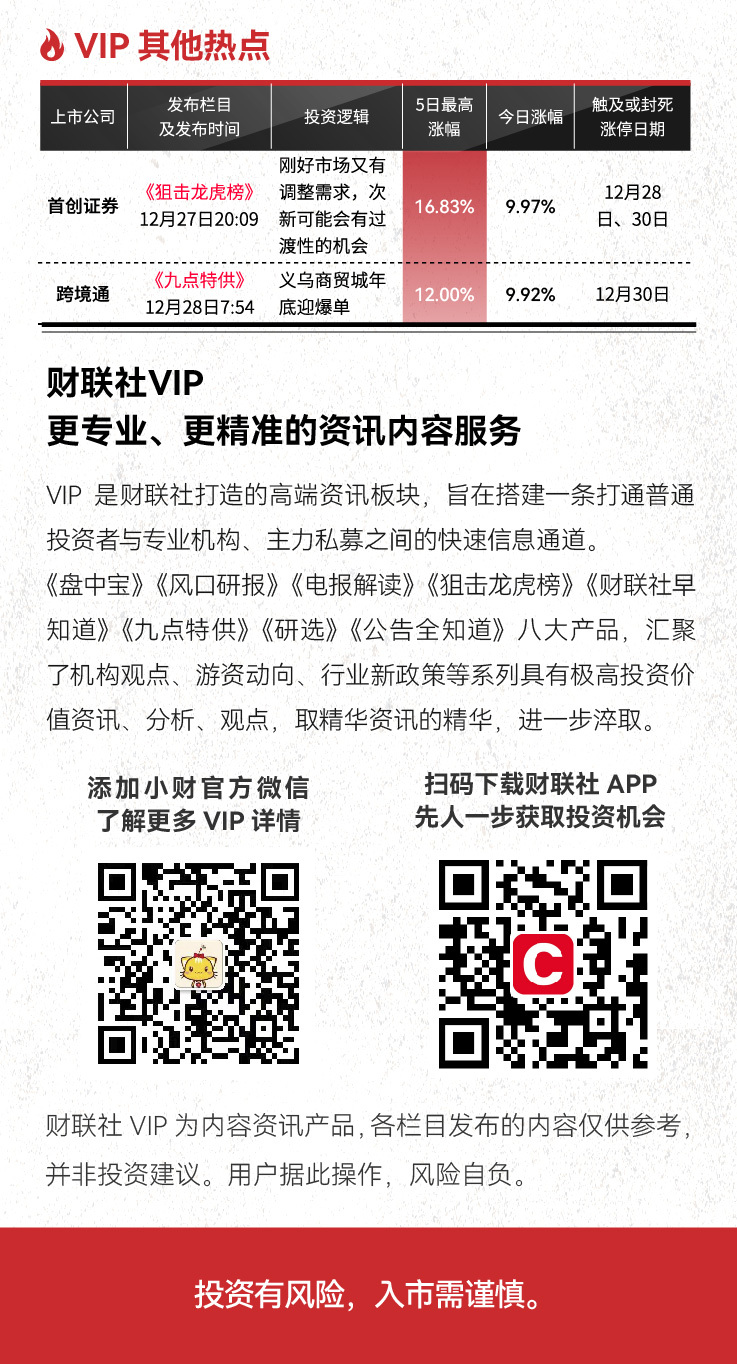 注:财联社VIP为内容资讯产品,并非投资建议。以下内容仅为资讯价值展示非对相关公司的推荐建议,非未来走势预测。投资有风险,入市需谨慎。