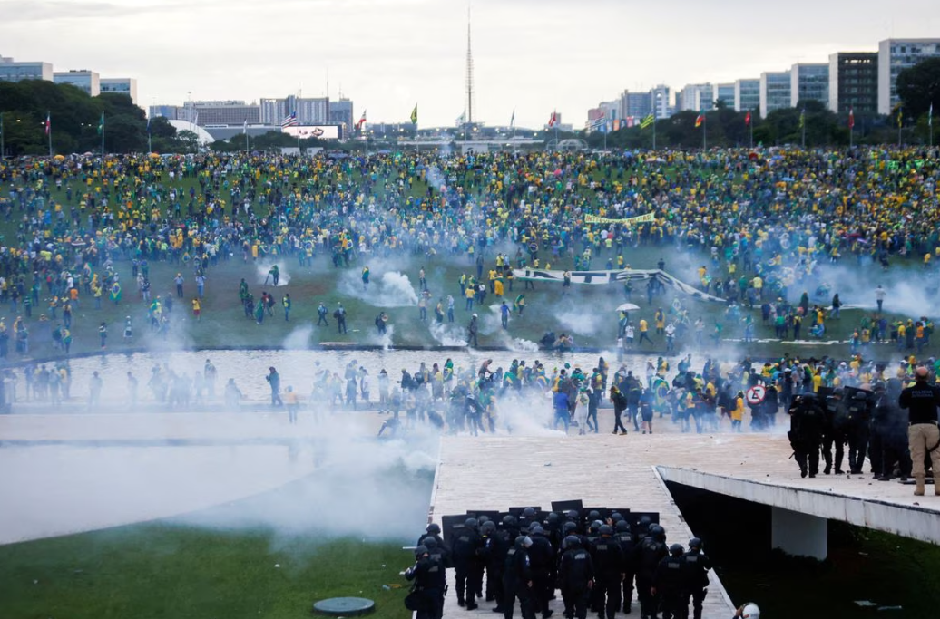 巴西前总统博索纳罗的支持者周日冲击了该国国会、最高法院和总统府,呼吁发动军事政变,推翻现任总统卢拉,后者在去年10月的巴西大选中获胜,取代博索纳罗成为新一任总统。