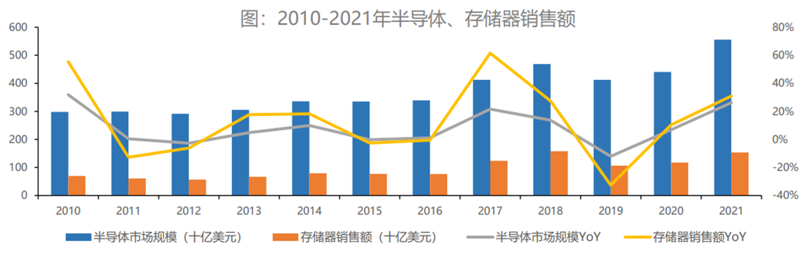 半导体行业存在周期性波动,每轮周期一般在4年左右。随着海外巨头集体削减开支以清理库存,中航证券指出,回顾过去几轮周期,存储器销售额、主要产品价格均随着半导体整体景气度波动,周期与半导体整体行业同步,但存储器波动幅度、弹性显著大于半导体整体。