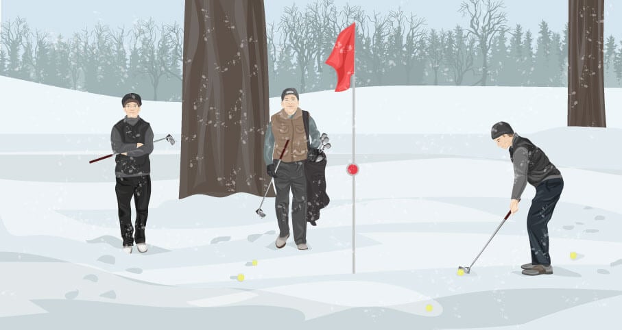 Golfshake.com编辑团队指出,随着越来越多的高尔夫球手参加这项运动以及整体球场条件的改善,冬天也不再是让此项运动停摆的时候。但是冬季室外高尔夫仍然面临许多挑战,如因为雨雪冰雹等天气环境,球面临湿润的果岭不会飞得特别远;寒冷时热身需要更长时间等。在无法控制天气的情况下,美国的高尔夫训练学院The Academy Of Golf Dynamics、高尔夫信息分享网站The Left Rough、美国高尔夫俱乐部Southampton Golf Club提供了更好地享受室外冬季高尔夫的建议。
