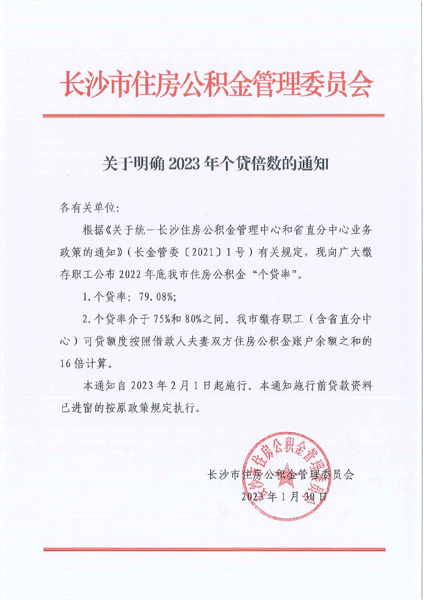 【长沙:公积金可贷款额度提高为余额的16倍】财联社1月30日电,长沙市住房公积金管理委员会发布了《关于明确2023年个贷倍数的通知》,长沙市缴存职工(含省直分中心)可贷额度按照借款人夫妻双方住房公积金账户余额之和的16倍计算。《通知》自2023年2月1日起施行。