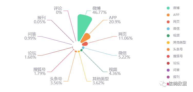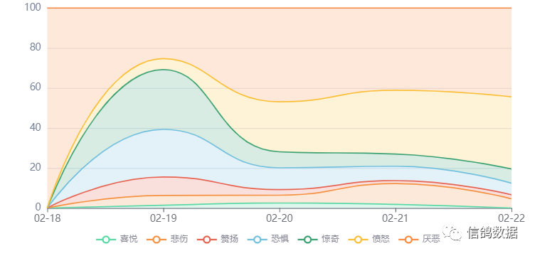 从情感分布占比图看,厌恶、愤怒、惊奇、恐惧占据较大部分,负面情绪浓重。