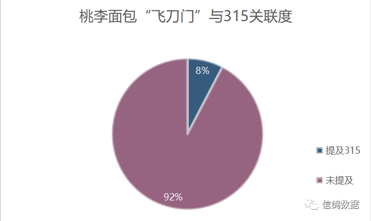 桃李面包“刀片门”事发与315临近,我们以“315”、“3.15”关键词在信息中搜索,共发现关联信息1616条,占总数据(21144条)的8%,比重较低。