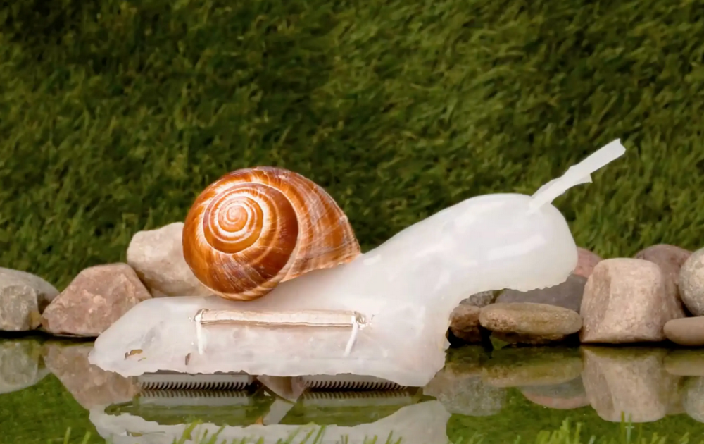 在实验室的一项测试中,研究人员首先创建了一个受蜗牛启发的爬行机器人,其由一个机载电池和一个嵌入软硅胶外壳中的电动机组成。电机使用一条导电有机凝胶复合材料条连接到车载电池,由于其自修复能力,该复合材料条可以在断线后恢复连接。