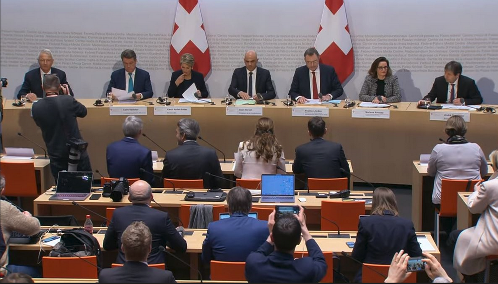 在这件事情的最后,瑞士政府仓促在伯恩举行记者招待会,瑞士财政部、央行和金融市场监管局的一把手,拉着瑞银、瑞信的董事长宣布了这项载入史册的交易。