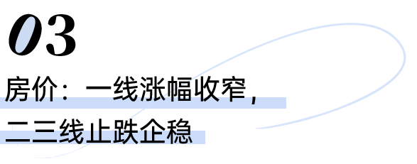 其中一线房价基本持稳,环比持平、同比微降1%。二线和三线城市当前仍处于房价历史低点,环比分别下降4%和3%,跌幅收窄。