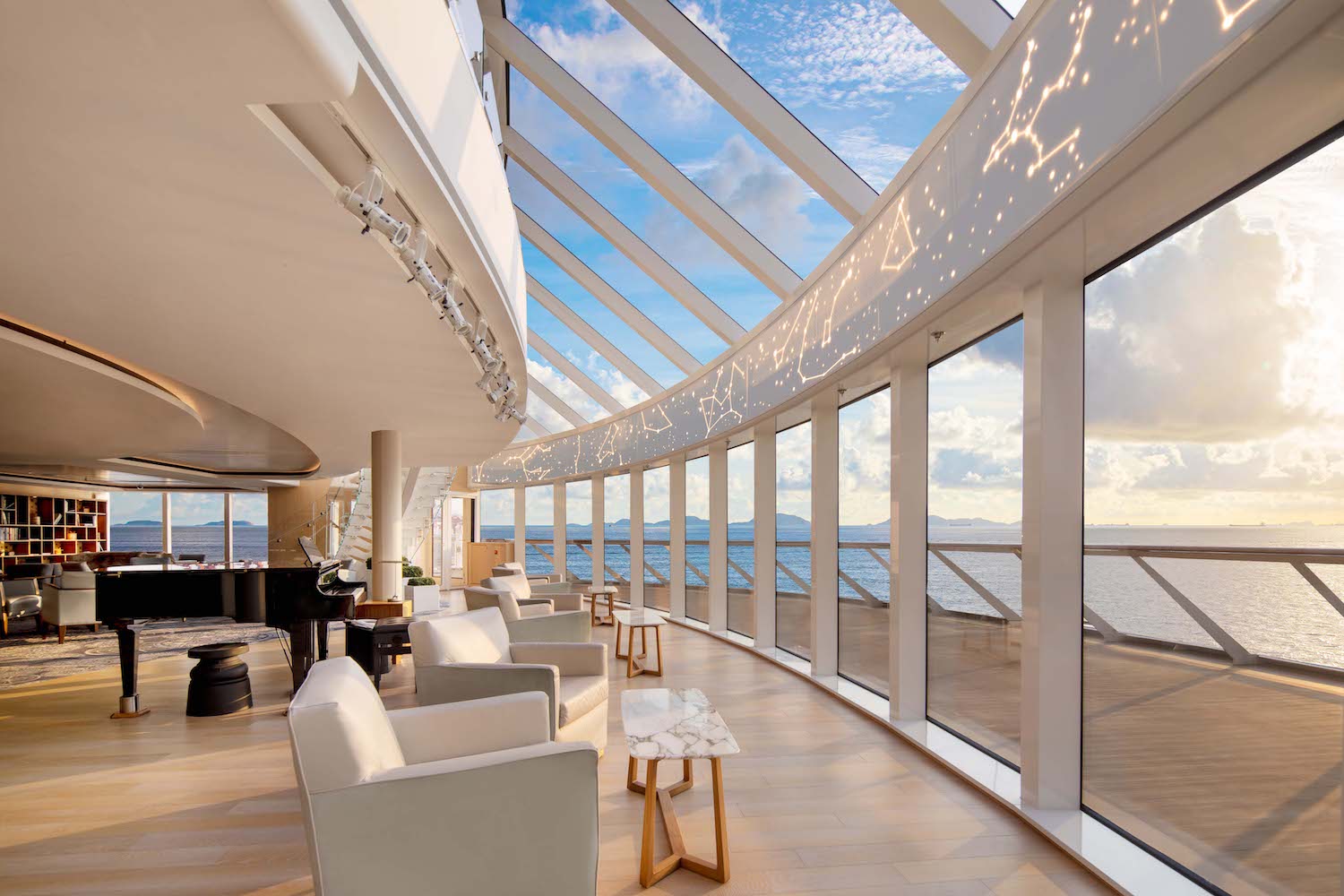 以更上乘的服务与空间为旅客提供更精致的邮轮体验是招商维京游轮开辟中国邮轮新市场的初衷,也恰成了顺应“小而美”趋势之作。作为一艘载客量仅930人、客房数量仅465间的中小型奢华邮轮,招商维京游轮所有客房均设有阳台,无内舱房及舷窗海景房,所有游客均可在客房中惬意饱览海天一色;除客房以外,邮轮另有多个休闲空间,常有驻船乐手在此进行现场演奏,让宾客可在钢琴、古琴、长笛等古典乐器的优雅旋律中放松,并享受启迪思维的海上时光;为了保证每位宾客都被妥帖照拂,招商维京游轮以1对2的服务人员配比务求带来宾至如归、细致入微的服务。