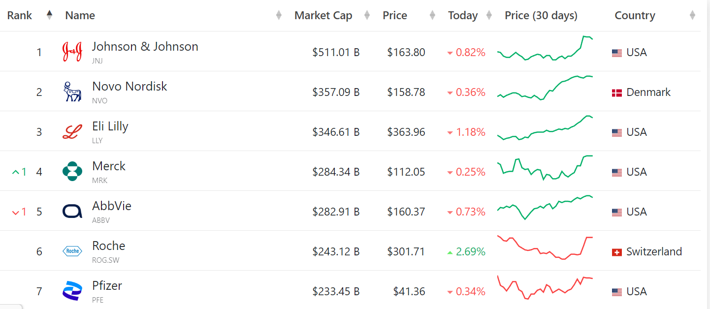 (药企市值排名,来源:CompaniesMarketcap)