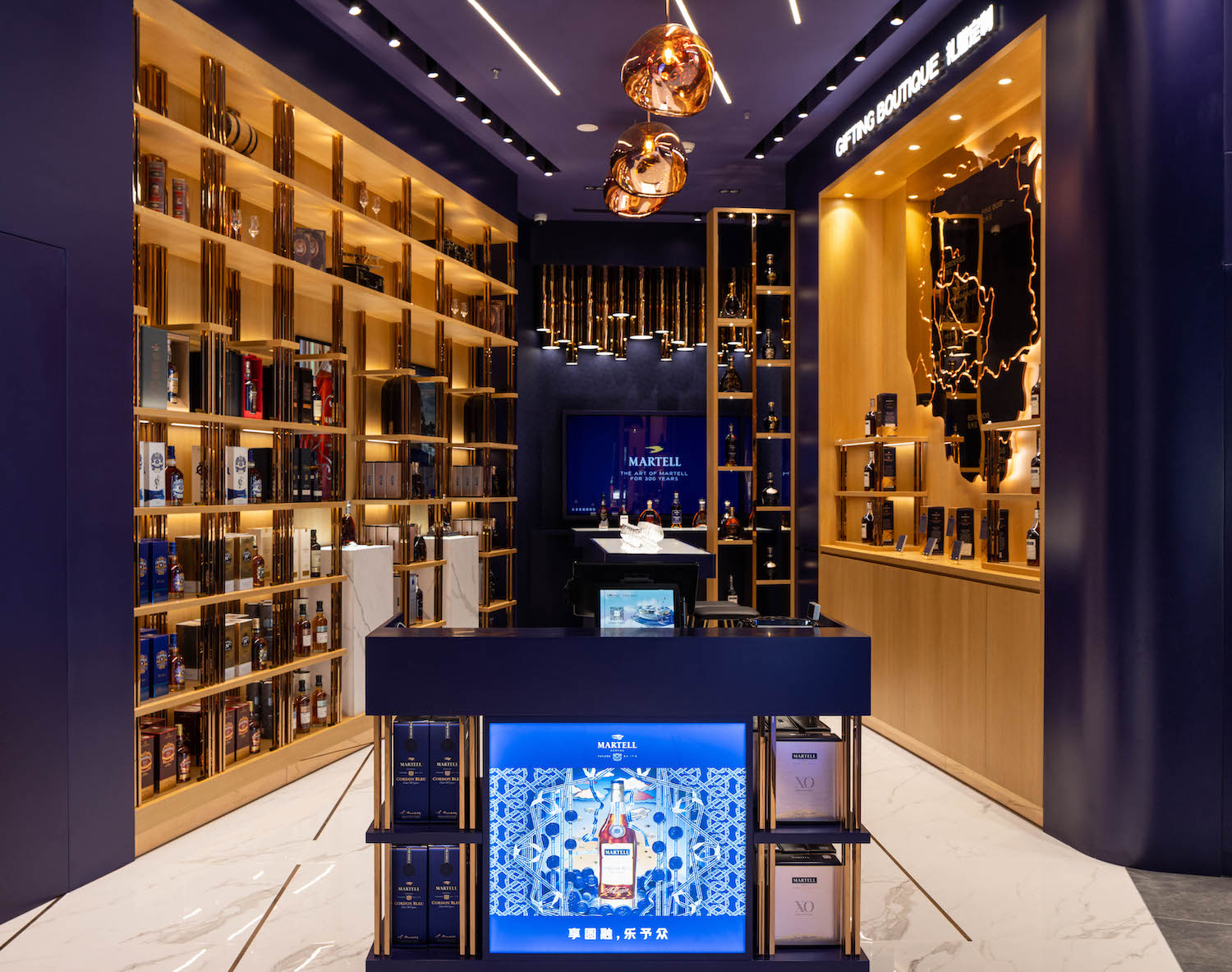 保乐力加第三届消博会展台的马爹利系列产品