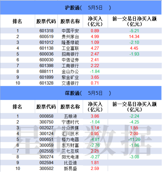 沪深股通两市前十大成交中净买入个股居多,贵州茅台连续净买入居首,工业富联净买入居次席,该股连续5个交易日获北向资金净买入,五粮液净买入居第三位。此外,中国平安、招商银行、中信证券、工商银行、交通银行等金融股均获北向资金买入。