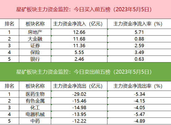 从主力板块资金监控数据来看,房地产板块主力资金净流入居首。