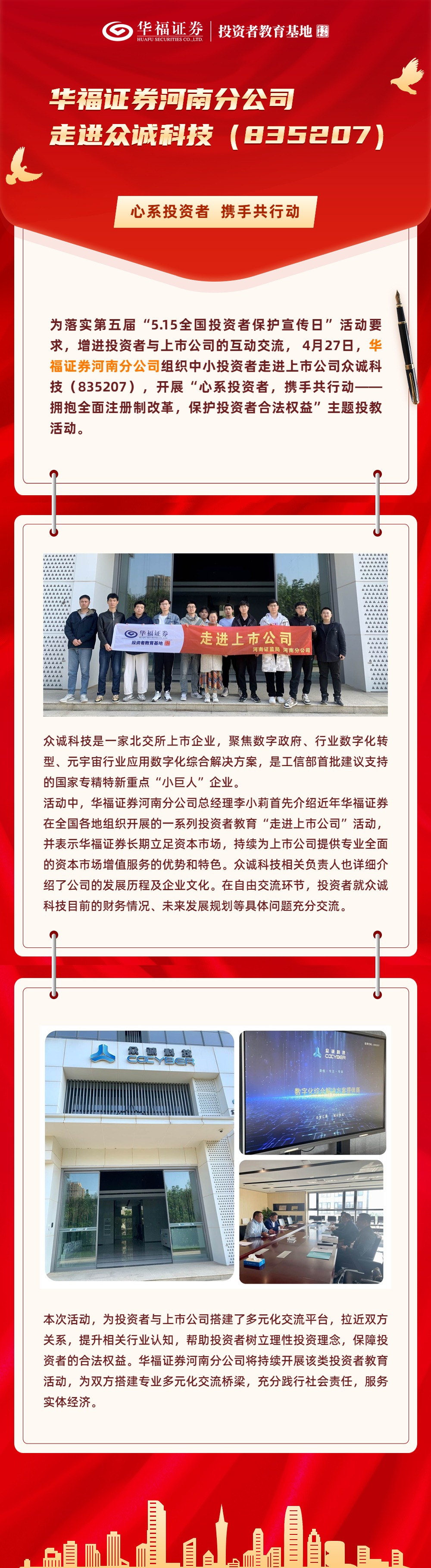 【5·15全国投资者保护宣传日】心系投资者,携手共行动——华福证券河南分公司走进上市公司众诚科技(835207)