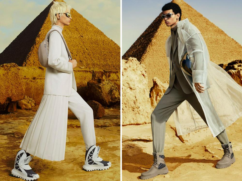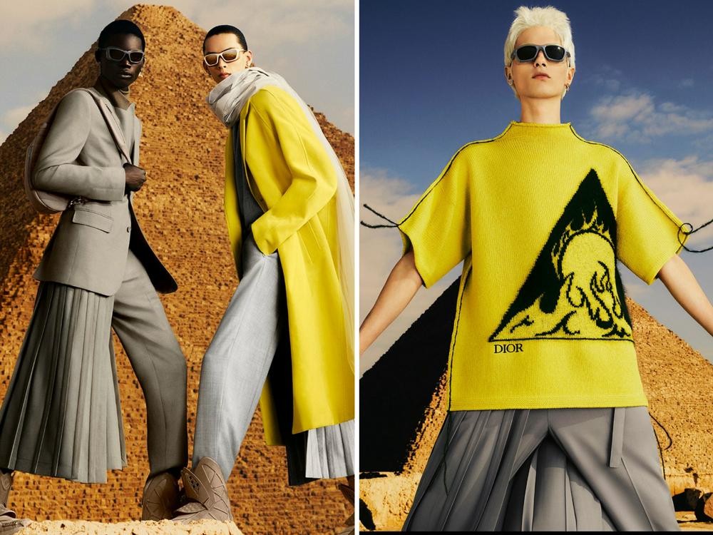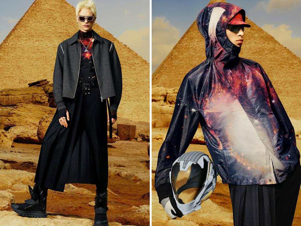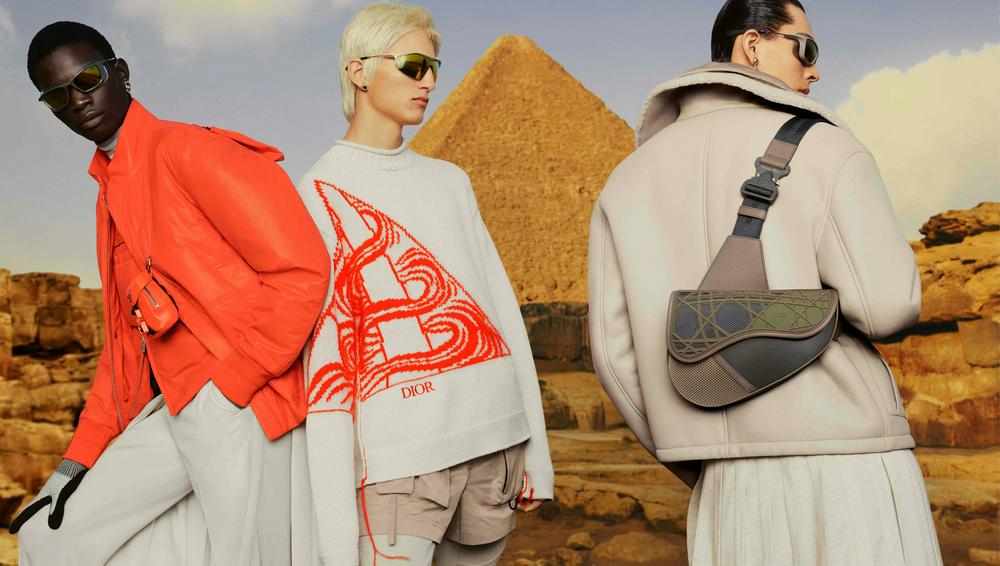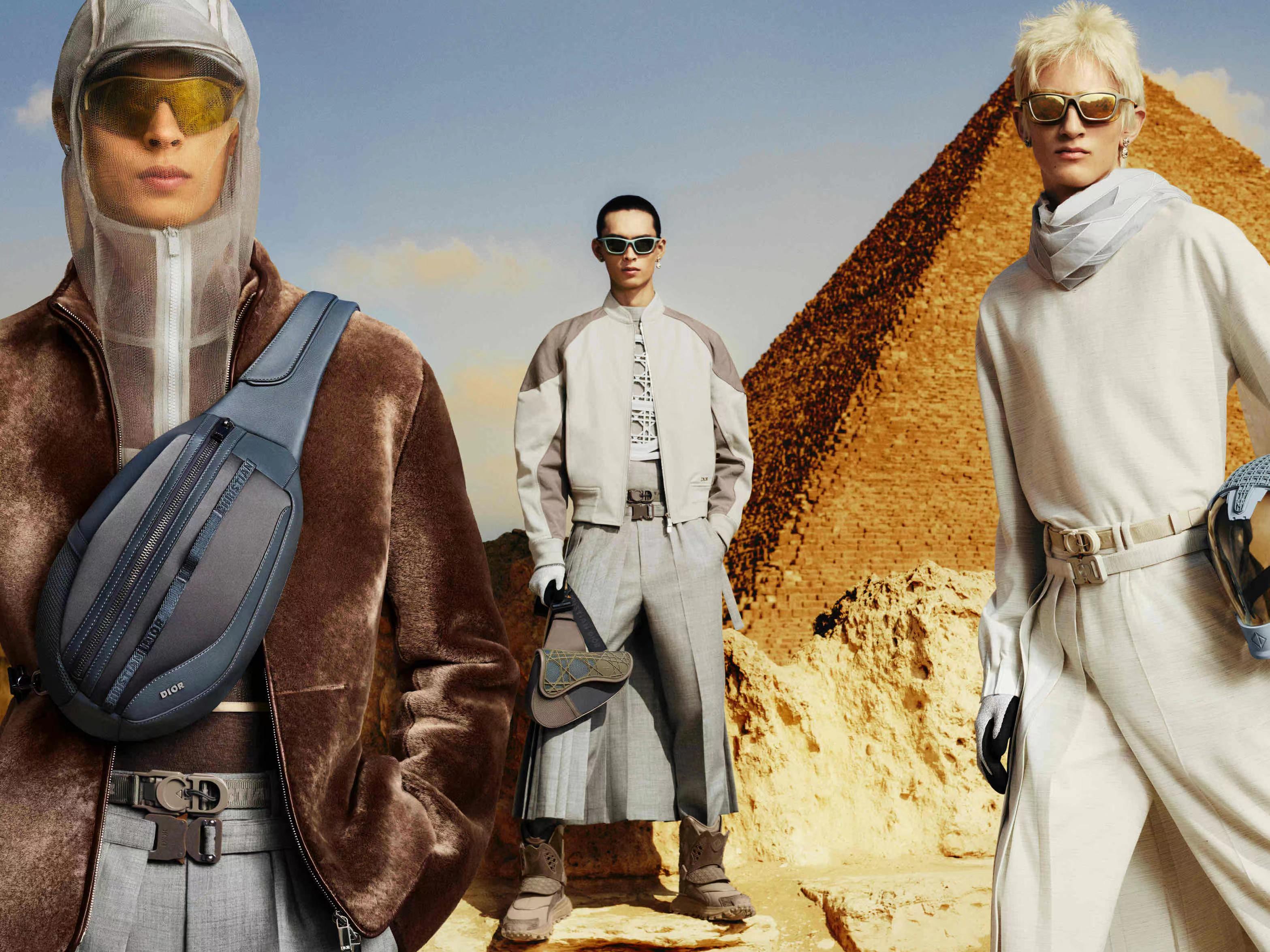 迪奥男装艺术总监金·琼斯(KIM JONES)打造的2023秋季男装系列撷取未来主义廓形,于埃及吉萨大金字塔前呈现出一场古代文明与现代世界的艺术对话。此系列广告大片亦延续时空之旅主题,穿梭于辉煌灿烂的古埃及瑰宝之间,抒写恢弘篇章。