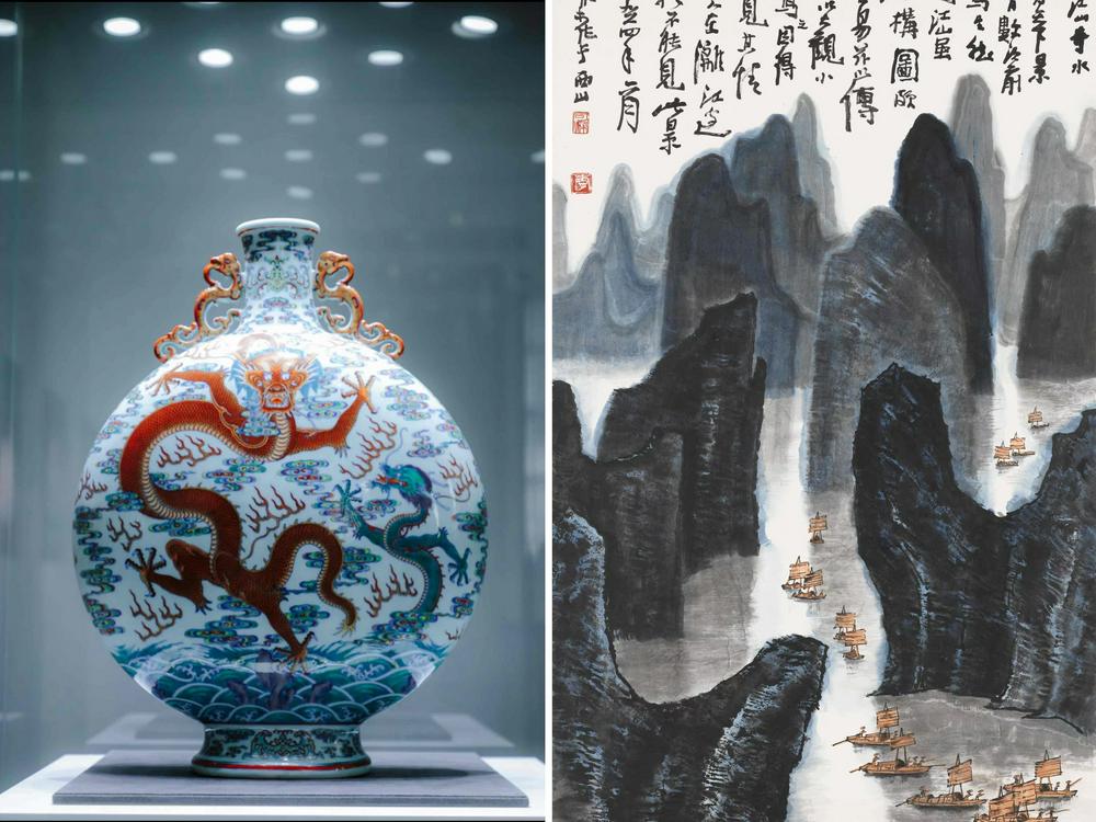 在中国瓷器及工艺精品部分呈现出乾隆主题现场专拍“绚彩斗妍─乾隆御瓷三珍”中珍稀非凡的乾隆御瓷精品,其中包括一件极为珍罕的清乾隆斗彩苍龙教子图夔龙耳抱月瓶,该抱月瓶自1995年于香港佳士得拍卖后,便未曾出现在流通领域。而中国近现代及当代书画部分,张大千《云峰古寺》、吴冠中《林与泉》、李可染《漓江山水》等精品书画佳作一并现身。二十及二十一世纪艺术部分,草间弥生《南瓜》系列、《花朵》和《无限之网》四件力作瞩目登场,同时呈现奈良美智《Night Fishing》、赵无极《玫瑰》和常玉《在椅子上攀爬的猫;裸女(双面画)》等西方大师及新锐艺术家的重要作品。