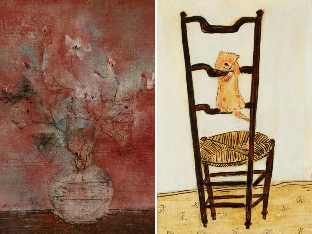 右:常玉——《在椅子上攀爬的猫;裸女(双面画)》