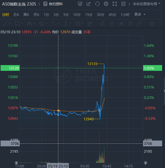 财联社5月22日电,富时中国A50指数期货涨幅扩大至1%。