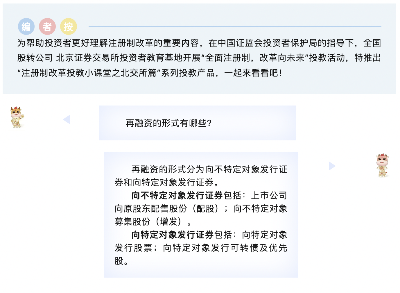 注册制改革投教小课堂之北交所篇丨第五十一期:再融资的形式有哪些?