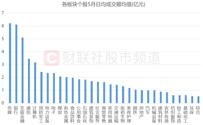 注:各板块个股5月日均成交额均值(亿元)