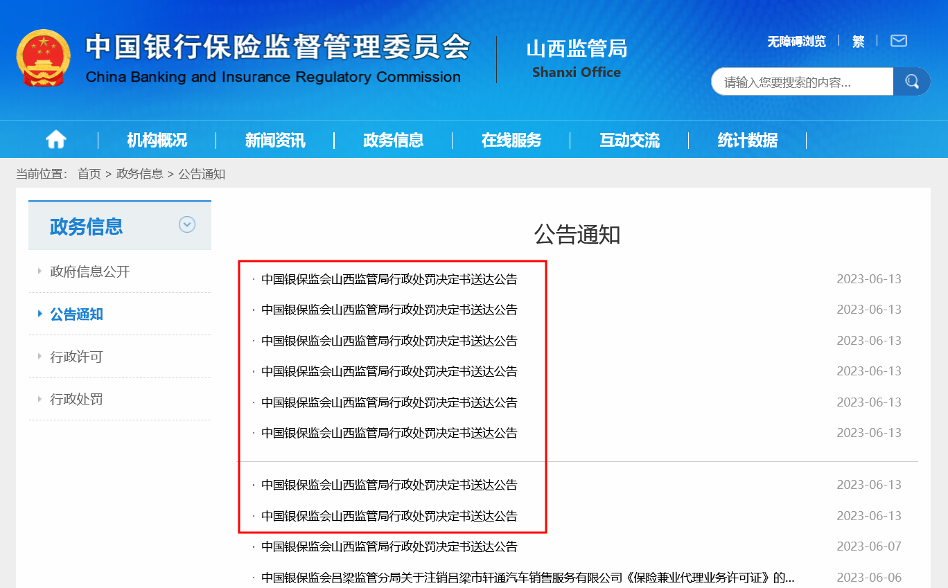 日前,中国银保监会山西监管局连续发布8份行政处罚决定书送达公告,中国农业银行8人因存在非法吸收公众存款的行为受到行政处罚。其中,5名大堂经理、1名客户经理、1名大堂引导员被作出禁止从事银行业工作2年的行政处罚,1名大堂经理被警告。