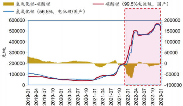 可以看到,在当初签订合同的2022年2月9日,碳酸锂价格在当年元旦站上30万元/吨之后开启跳涨模式,2月中旬冲上40万元/吨,并在3月初突破50万元/吨大关,较年初上涨近7成。对比2021年年初5.5万元/吨的低价更是直接暴涨8倍,涨幅高达809%。2022年11月底,碳酸锂价格更是涨到了58万元/吨的历史最高位点。