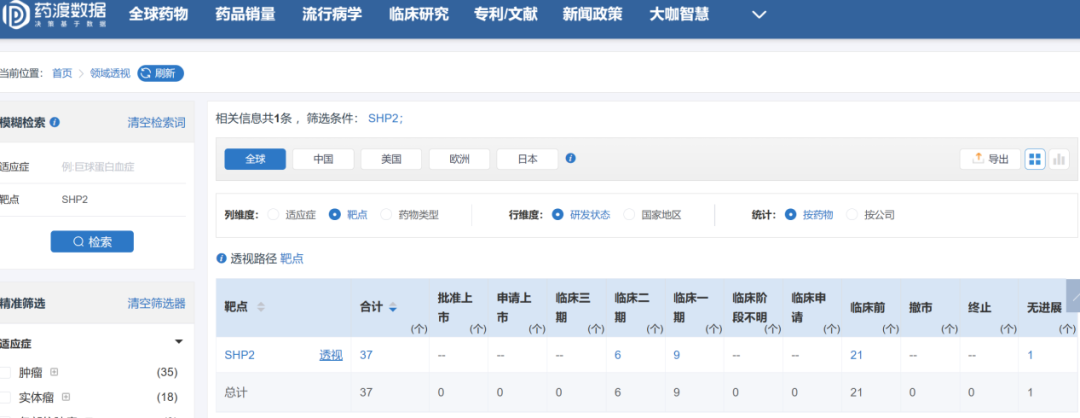 但需要注意的是,据药渡数据显示,目前全球在研的SHP2靶点产品的数量超过超过30个,其中大多已处于临床前阶段。这意味加科思“SHP2”抑制剂产品在未来即便成功商业化,也有可能面临相当激烈的市场竞争。