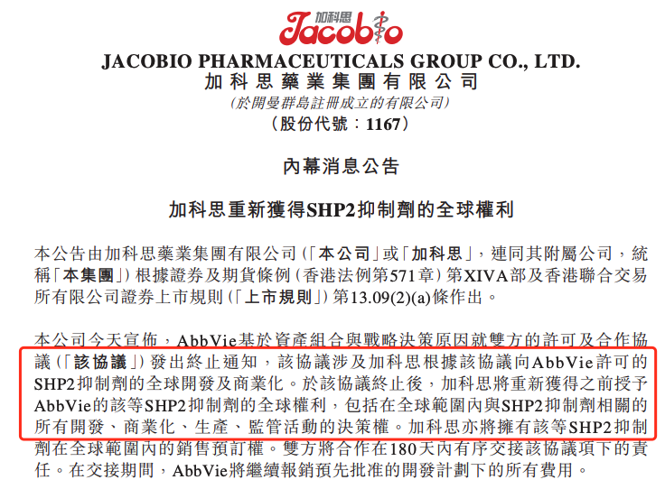不过,由于协议终止,加科思也重新获得了SHP2抑制剂全球开发及商业化权益。