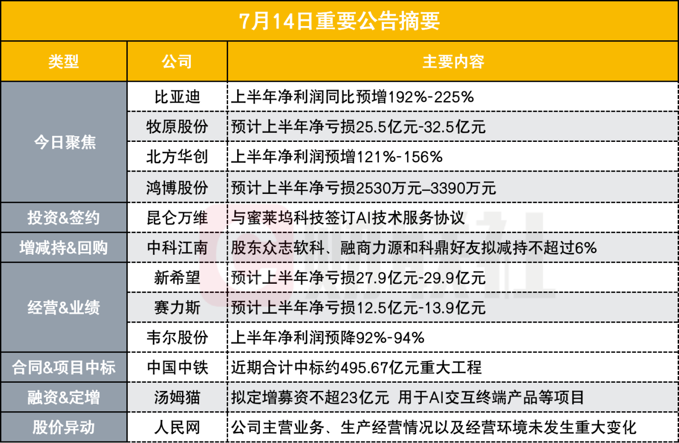 【比亚迪:上半年净利润预增192.05% -225.43%】
